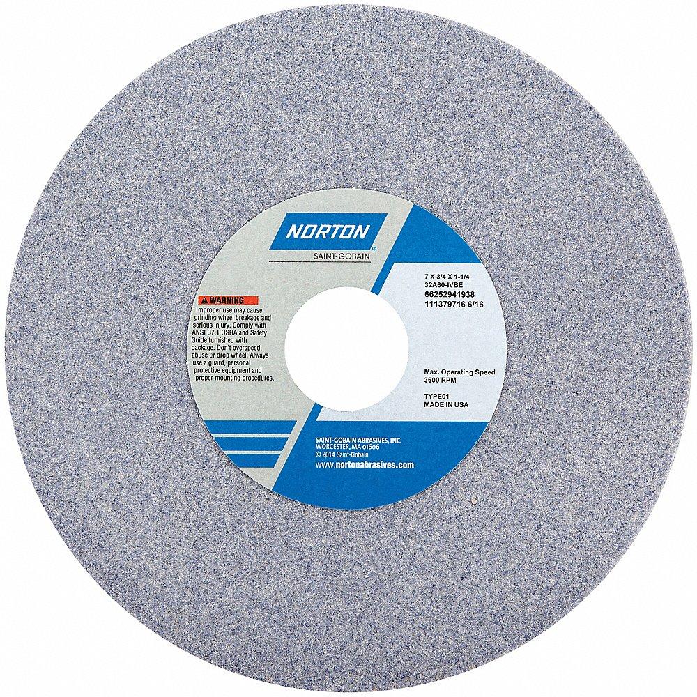 NORTON ABRASIVES 66252941938 Straight Grinding Wheel, 7 Inch Dia., 1 1/4 Inch Hole Size, Type 1