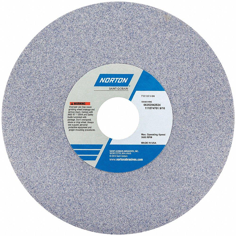 NORTON ABRASIVES 66252942524 Straight Grinding Wheel, 7 Inch Dia., 1 1/4 Inch Hole Size, 1 Inch Thickness