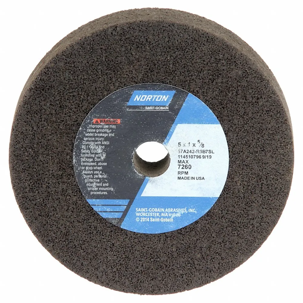 NORTON ABRASIVES 69936654177 Straight Grinding Wheel, 5 Inch Dia., 5/8 Inch Hole Size, 1 Inch Thickness
