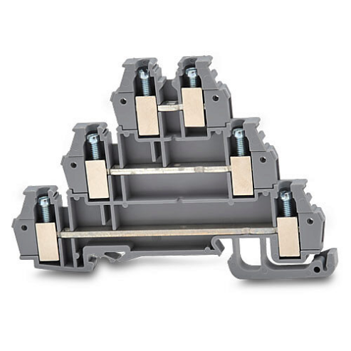 DINNECTOR DN-TL14-A Screw Triple-Level Terminal Block, Gray, 10A, 35mm Din Rail Mount, 10Ka Sccr