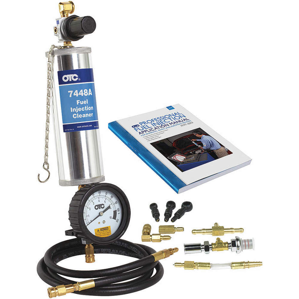OTC 7649A fuel injector canister kit is used for cleaning and decarbonising operations. This OTC7448A fuel injection cleaner canister kit has a heavy-duty stainless steel container for long-lasting service.