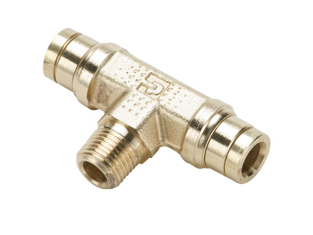 PARKER 172PMTNS-8-6 Male Branch Tee, Push-Connect, Brass, 3/8 NPT
