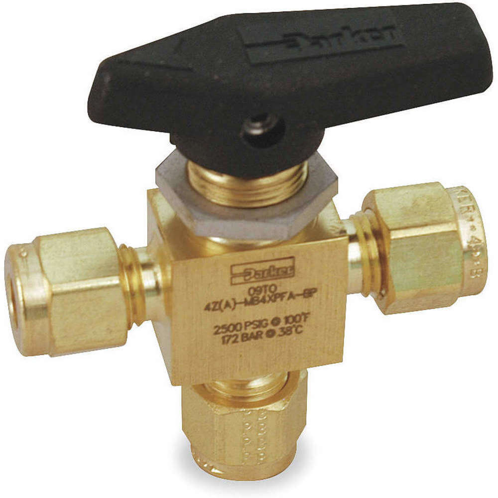 PARKER 2A-MB2XPFA-BP Brass Ball Valve 3-way Compression x Compression x Compression 1/8 In