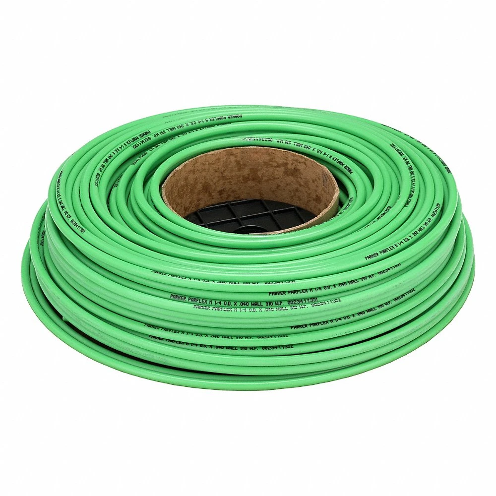 PARKER N-4-040-GRN Tubing, Nylon, Green, 1/4 Inch OD, 5/32 Inch Id, 250 Ft Length, Shore D 62