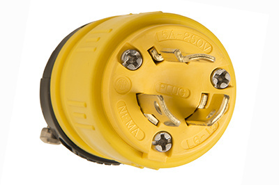 PASS AND SEYMOUR 2449 Locking Plug, 250V, Rubber, Dust Tight, Yellow