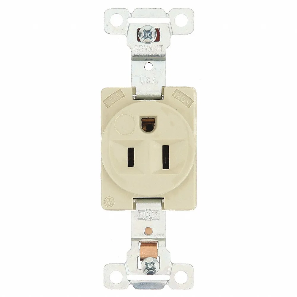 PASS AND SEYMOUR 5251-I Receptacle, Single, 15 A, 125V AC, Ivory, 2 Poles, Screw Terminals