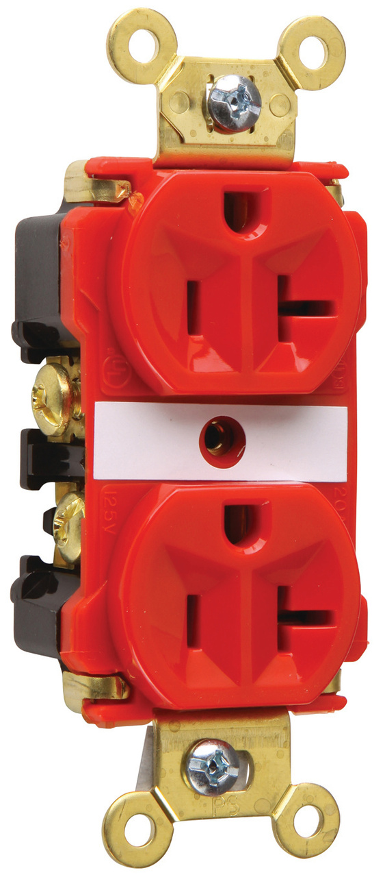 PASS AND SEYMOUR 5362-ARED Extra Heavy Duty Duplex Receptacle, Spec Grade, 20A, 125V, Red