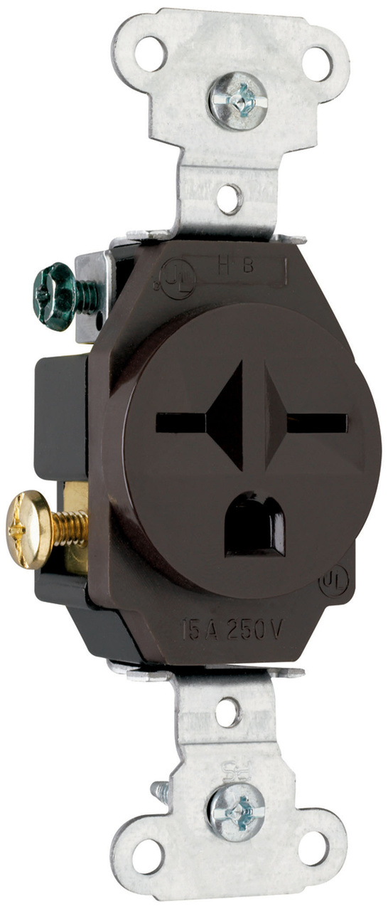 PASS AND SEYMOUR 5651 Single Receptacle Spec Grade, Heavy Duty, 15A, 250V, Brown