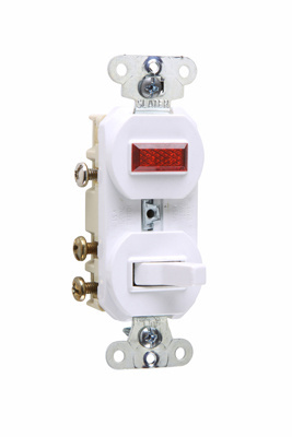 PASS AND SEYMOUR 695-W Combination Switch, Non Grounding, Pilot Light, 15A, 3 Way, 120/125VAC, White