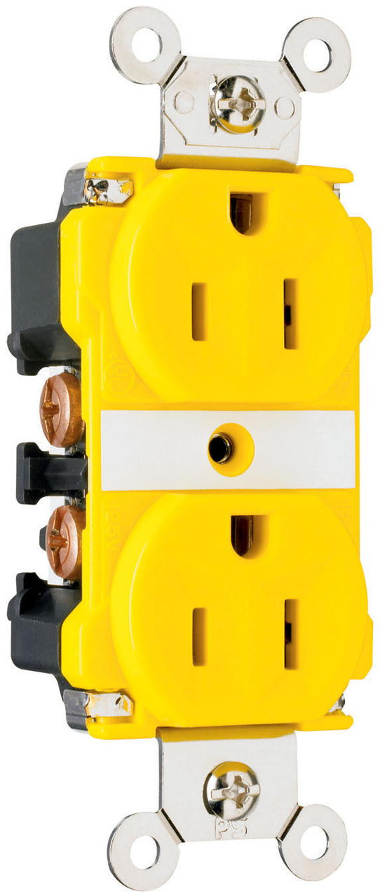 PASS AND SEYMOUR CR6200 Extra Heavy Duty Duplex Receptacle, Spec Grade, 15A, 125V, Yellow