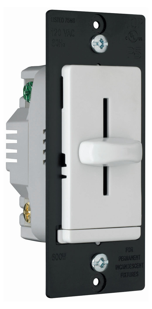 PASS AND SEYMOUR LS600-W Incandescent Slide Dimmer, 120V, White