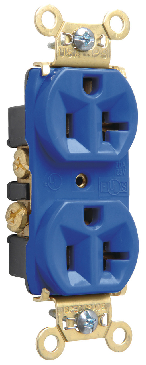 PASS AND SEYMOUR PS5362-BL Heavy Duty Duplex Receptacle, Spec Grade, 20A, 125V, Blue