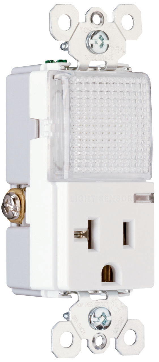 PASS AND SEYMOUR PS8-HWLW Single Receptacle, Hallway Light, 20A, 120/125VAC, White
