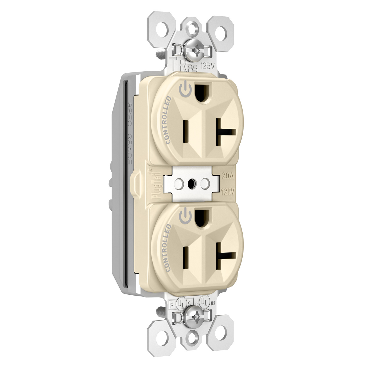 PASS AND SEYMOUR PTTR5362CDLA Duplex Receptacle, Spec Grade, Plug Load Controllable, 20A, 125V, Light Almond