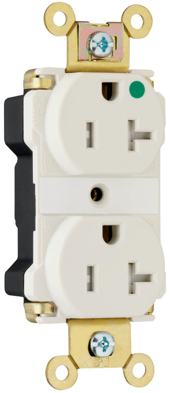 PASS AND SEYMOUR PTTR63-HLA Tamper Resistant Duplex Receptacle, Hospital Grade, 20A, 125V, Light Almond