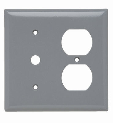 PASS AND SEYMOUR SP128-GRY Combination Opening Wall Plate, 1 Telephone And 1 Duplex Receptacle, 2 Gang