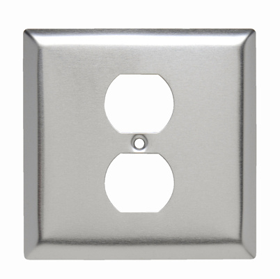 PASS AND SEYMOUR SS748 Center Opening Wall Plate, Duplex Receptacle, 2 Gang, 302/304 Stainless Steel
