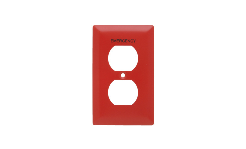 PASS AND SEYMOUR SS8-ERED Wall Plate, Emergency, One Gang Duplex Receptacle, Stainless Steel, Red