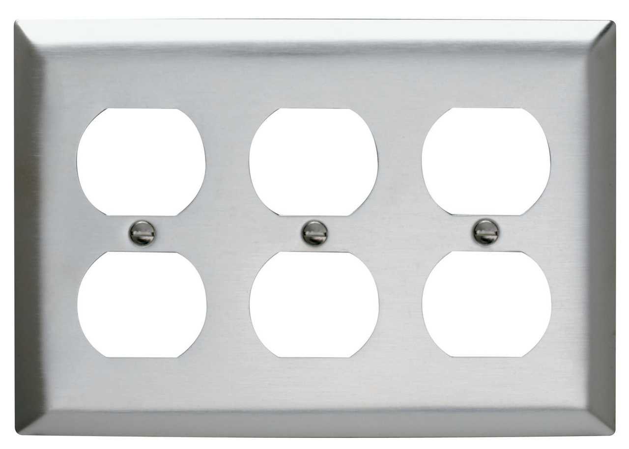 PASS AND SEYMOUR SS83 Wall Plate, Duplex Receptacle Opening, 3 Gang, 302/304 Stainless Steel