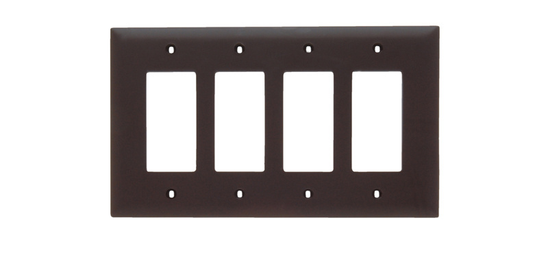PASS AND SEYMOUR TPJ264 Decorator Opening Wall Plate, 4 Gang, Brown