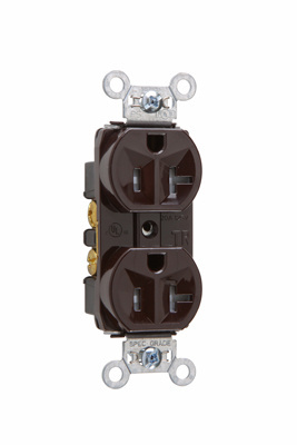 PASS AND SEYMOUR TR5362 Hard Use Duplex Receptacle, Spec Grade, Tamper Resistant, 20A, 125V, Brown