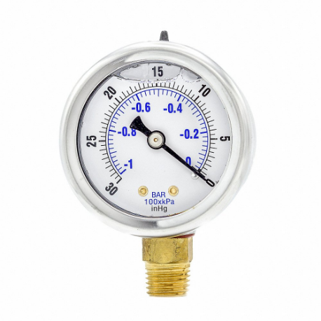PIC GAUGES 201L-204A Industrial Vacuum Gauge, -30 To 0 Psi, 2 Inch Dial, 1/4 Inch Npt Male, Dual