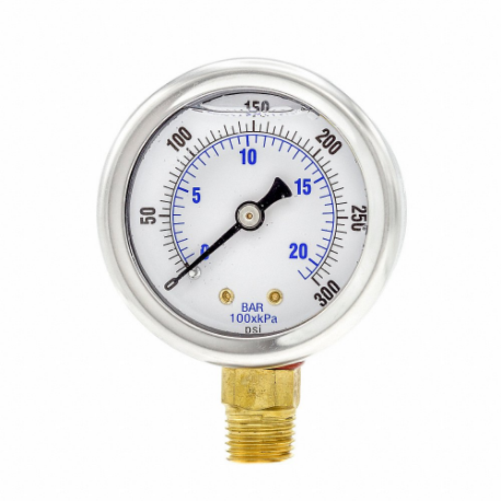 PIC GAUGES 201L-204H Industrial Pressure Gauge, 0 To 300 Psi, 2 Inch Dial, 1/4 Inch Npt Male, Dual