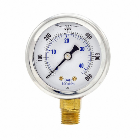 PIC GAUGES 201L-204K Industrial Pressure Gauge, 0 To 600 Psi, 2 Inch Dial, 1/4 Inch Npt Male, Dual