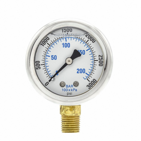 PIC GAUGES 201L-204P Industrial Pressure Gauge, 0 To 3000 Psi, 2 Inch Dial, 1/4 Inch Npt Male