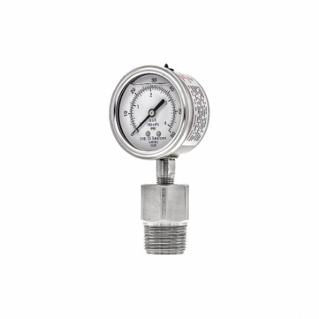 | Product | Model | Pressure Range Type | Pressure Range | Vibration Resistance | Accuracy | Primary Scale Units | Gauge Case Liquid | Ambient Temp. Range | Secondary Pressure Range | Price | |
