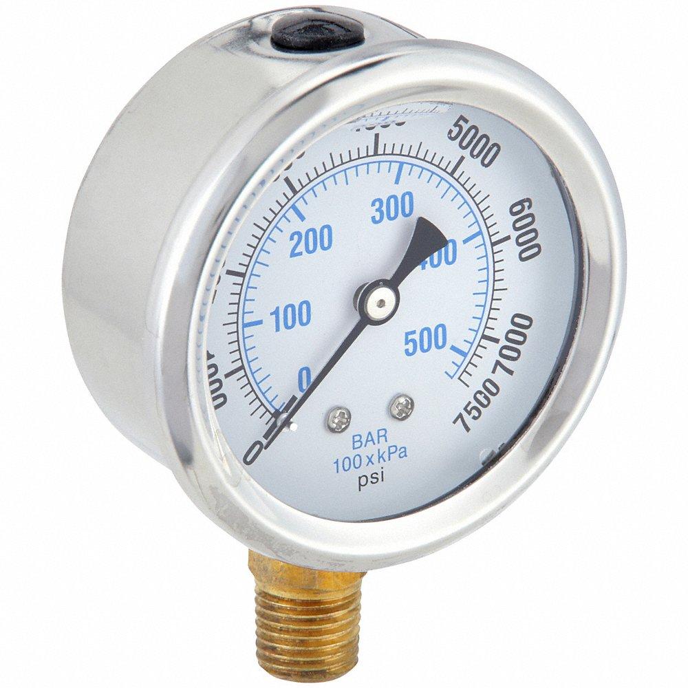 PIC GAUGES PRO-201L-254T Industrial Pressure Gauge, 0 To 7, 500 PSI, 2 1/2 Inch Dial, Liquid-Filled