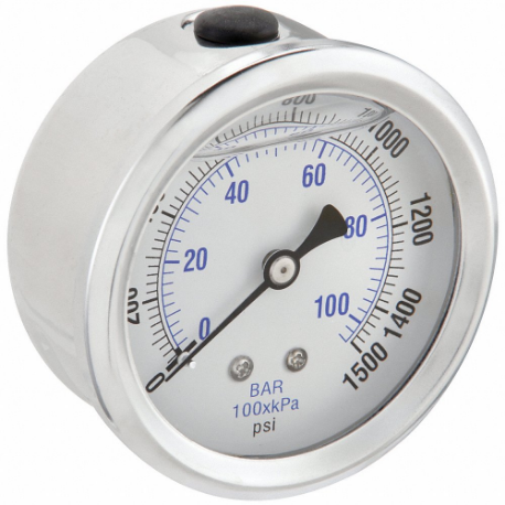 PIC GAUGES PRO-202L-254N Industrial Pressure Gauge, 0 To 1, 500 PSI, 2 1/2 Inch Dial, Liquid-Filled