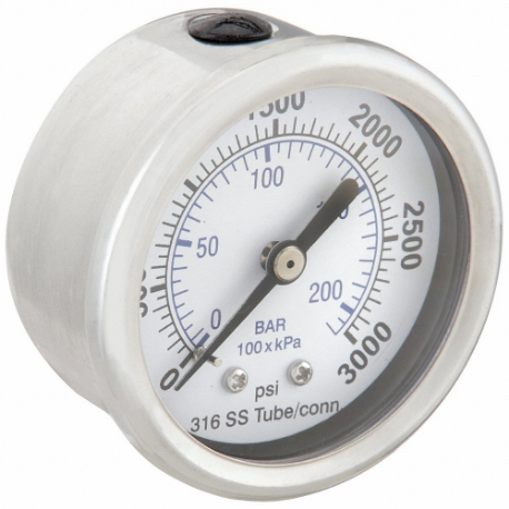 PIC GAUGES PRO-302D-204P-01 Industrial Pressure Gauge, 0 To 3000 Psi, 2 Inch Dial, Field-Fillable, 1/4 Inch Npt Male