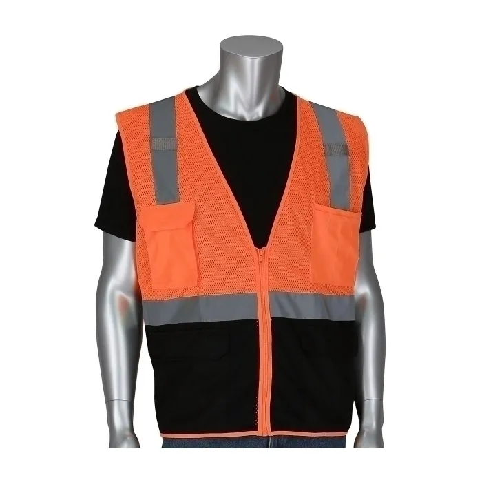 PIP 302-0710B-OR/2X Protective Clothing High Visibilty Vest, 2XL, Hi-Vis Orange, Each