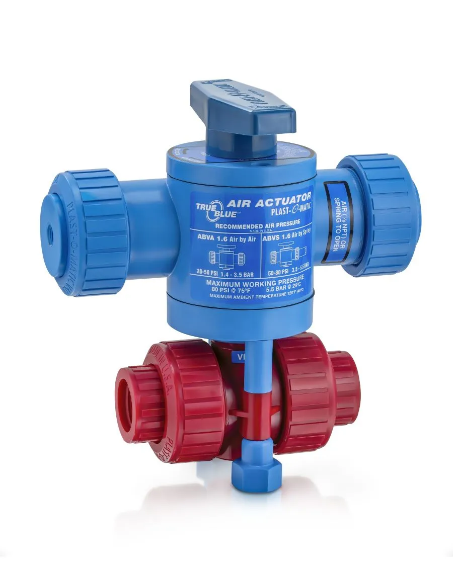 PLAST-O-MATIC ABVA075VS-RPF Air Actuated Ball Valve, Red Kynar, Socket Connection, FKM Seal, 3/4 Inch Size