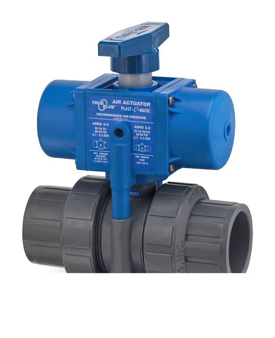 PLAST-O-MATIC TABRA150VS-CP Air Actuated Ball Valve, CPVC, Socket Connection, FKM Seal, 1-1/2 Inch Size