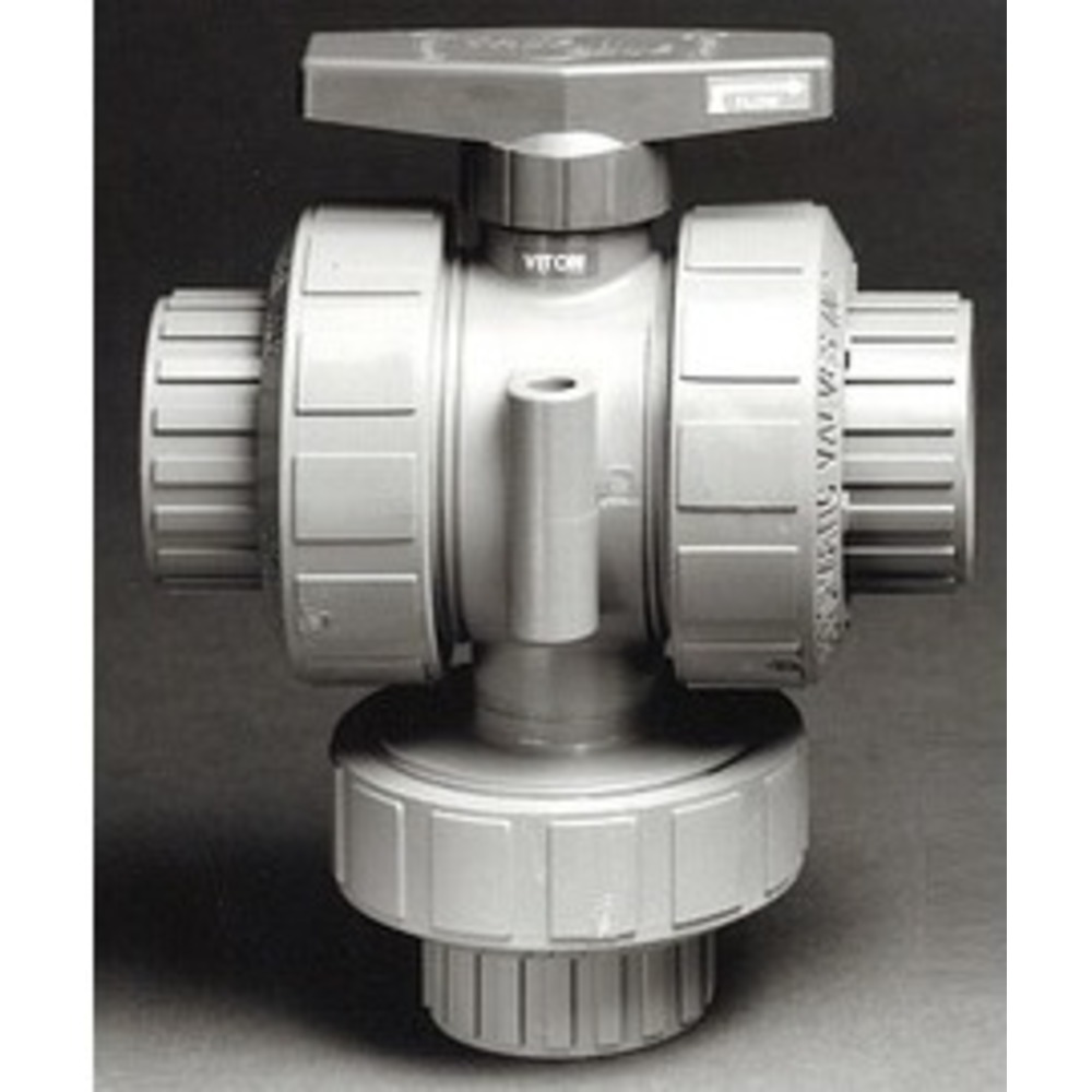 PLAST-O-MATIC TMBV075EPT-CP Ball Valve, Manual, 3-Way, 2 Hole, EPDM Seal, CPVC, 3/4 Inch Size