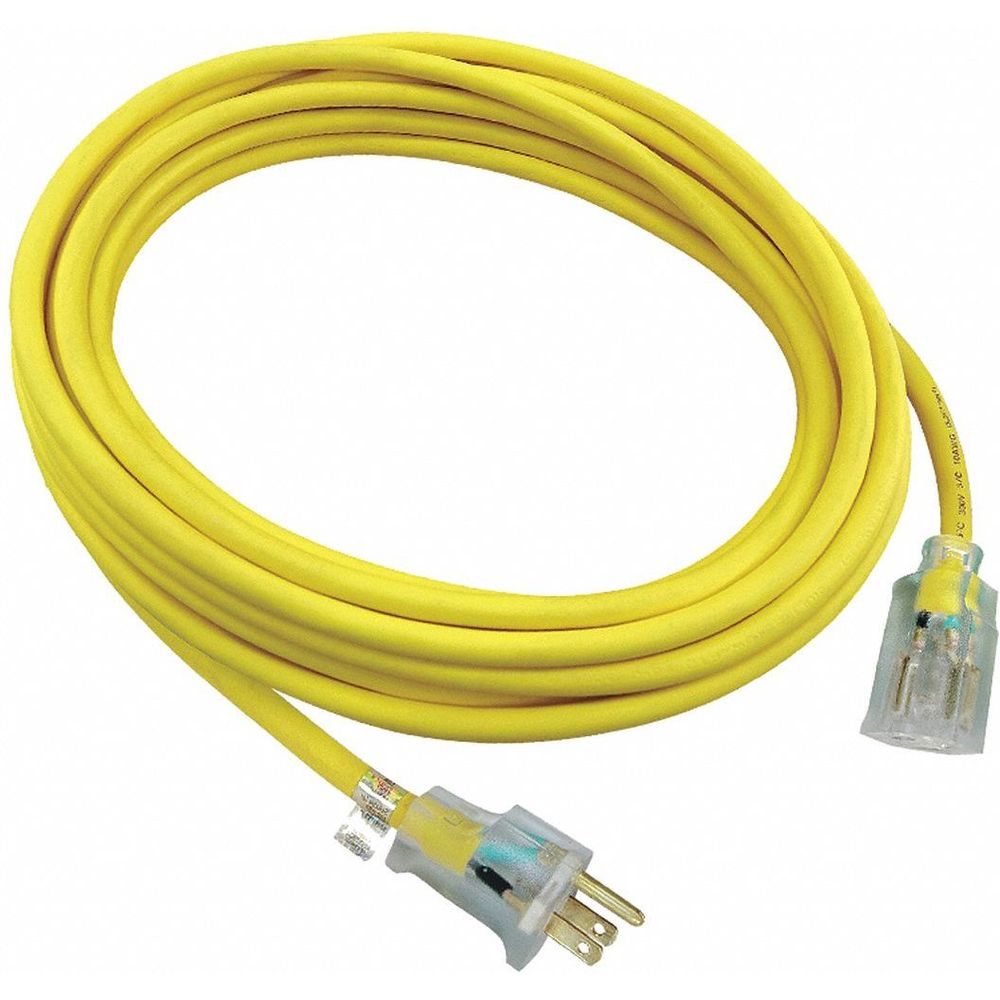 POWER FIRST 52NY26 Lighted Extension Cord, 25 Feet Long, Max Amps 15, Number of Outlets 1, Yellow