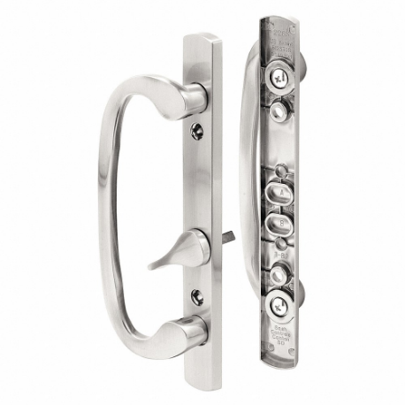 PRIME LINE C 1282 Patio Door Handle Set Latch, 3/16 Inch Bolt Hole Dia, Satin Nickel