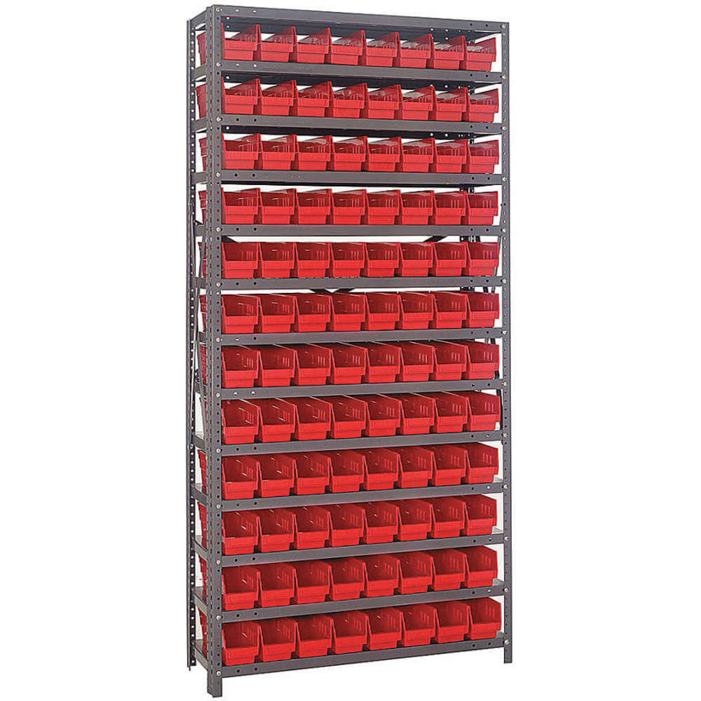 QUANTUM STORAGE SYSTEMS 1275-101RD Bin Shelving, 36 x 12 x 75 Inch Size, 1 Sided, 96 Bin, Open, Shelf Bin, Red