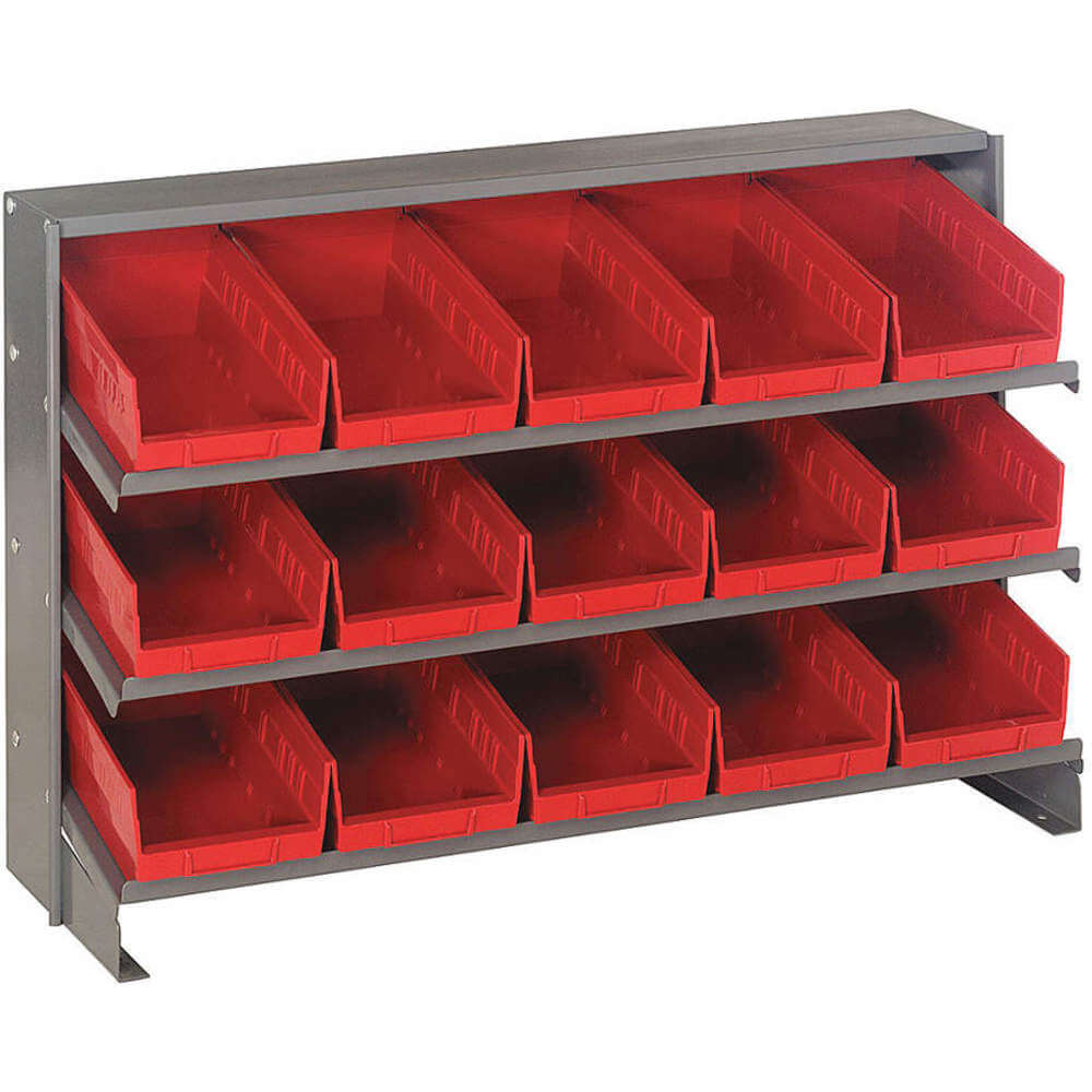 QUANTUM STORAGE SYSTEMS QPRHA-102RD Bench Pick Rack, 36 x 12 x 21 Inch, 1 Sided, 15 Bin, Open, Shelf Bin
