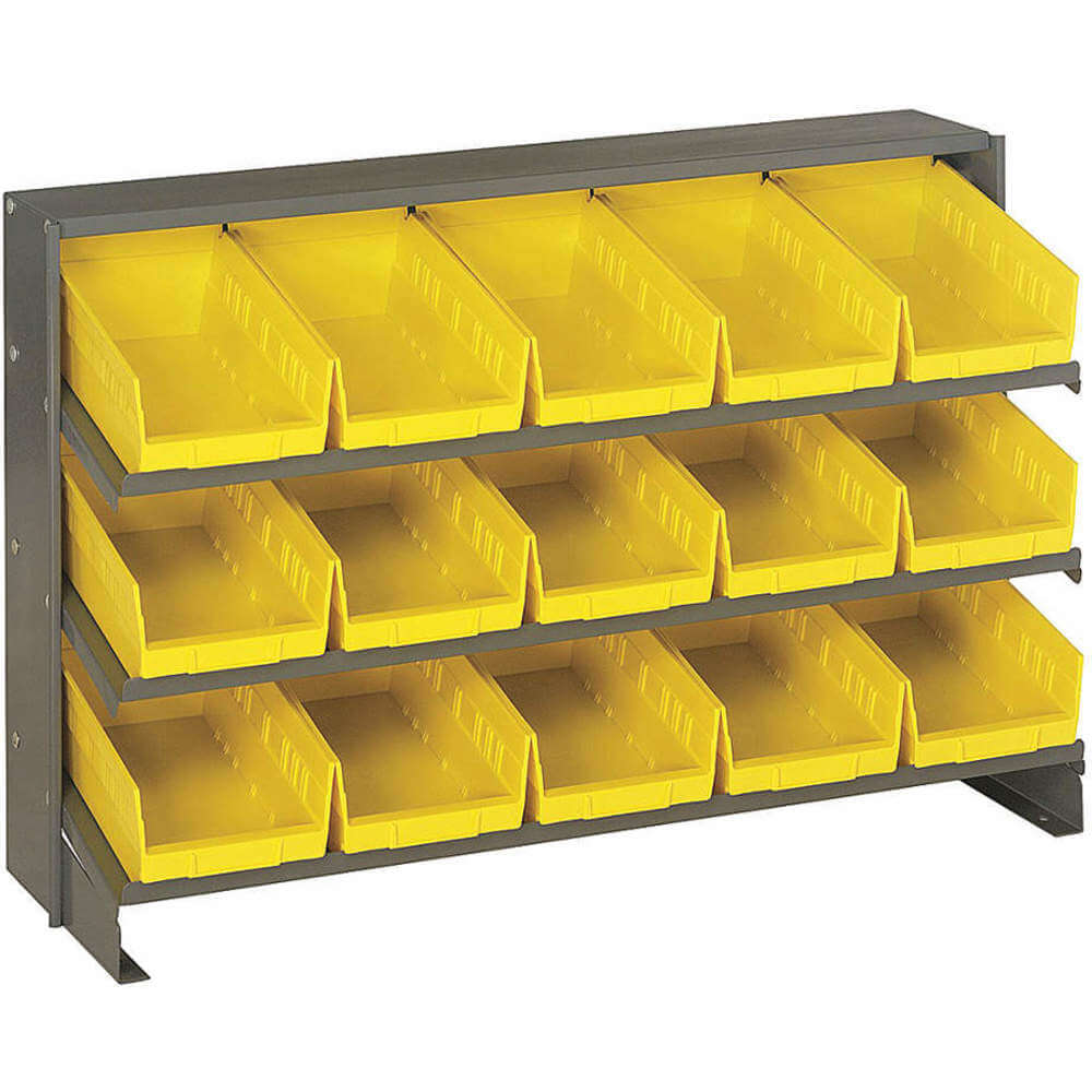 QUANTUM STORAGE SYSTEMS QPRHA-102YL Bench Pick Rack, 36 x 12 x 21 Inch, 1 Sided, 15 Bin, Open, Shelf Bin