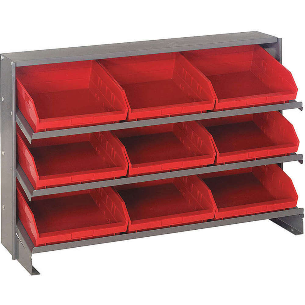 QUANTUM STORAGE SYSTEMS QPRHA-109RD Bench Pick Rack, 36 x 12 x 21 Inch, 1 Sided, 9 Bin, Open, Shelf Bin
