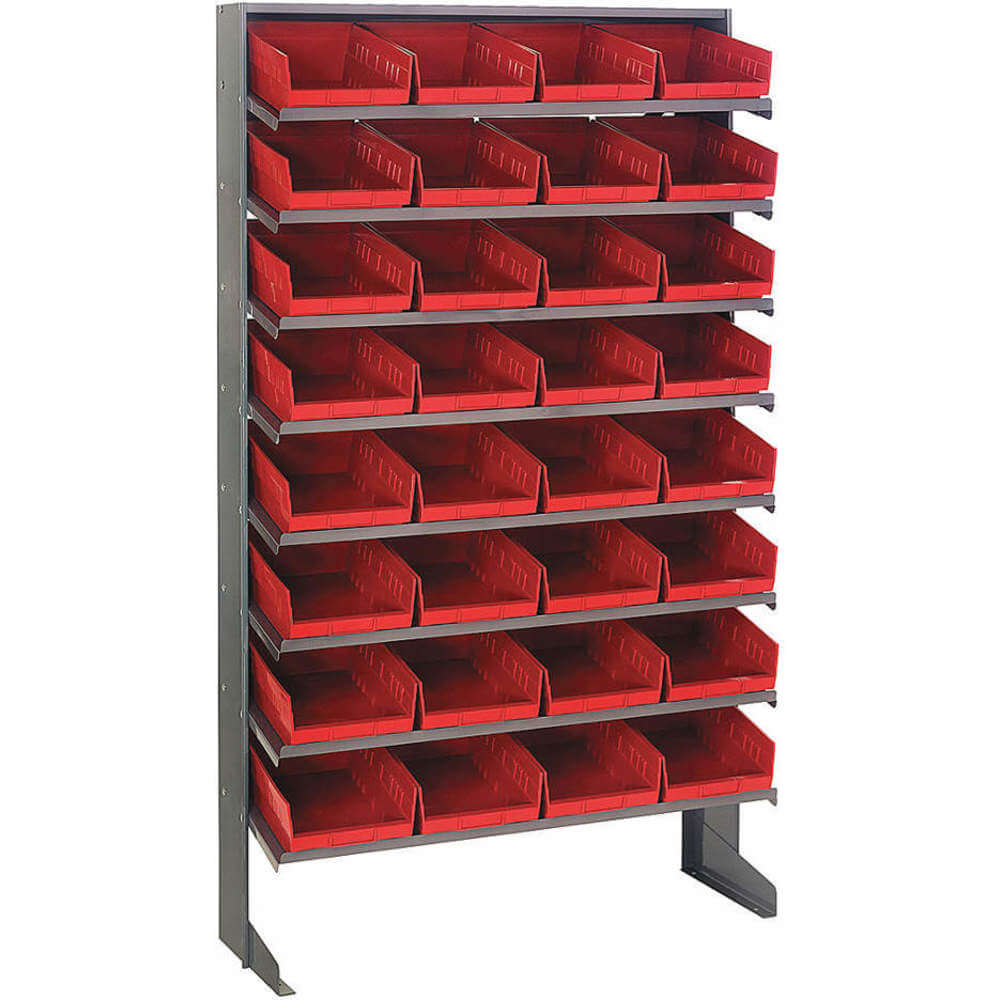 QUANTUM STORAGE SYSTEMS QPRS-107RD Pick Rack, 36 x 12 x 60 Inch, 1 Sided, 32 Bin, Open, Shelf Bin, Red