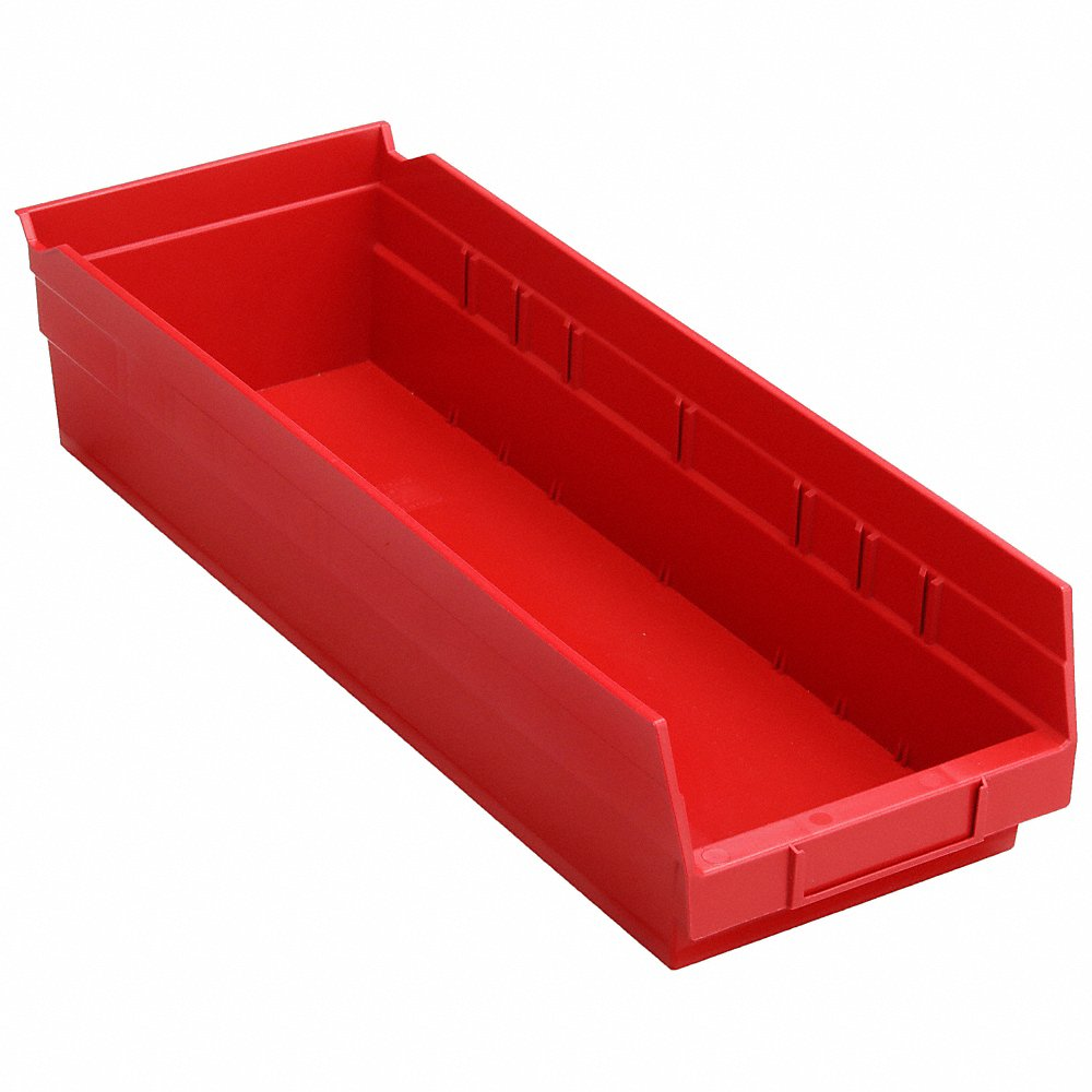 QUANTUM STORAGE SYSTEMS QSB104RD Shelf Bin, 17 7/8 in Overall Length, 6 5/8 x 4 Inch, Red, Nestable