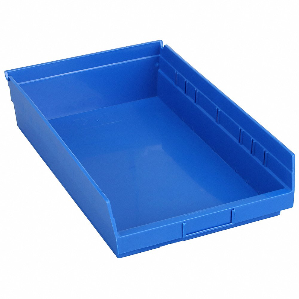 QUANTUM STORAGE SYSTEMS QSB110BL Shelf Bin, 17 7/8 in Overall Length, 11 1/8 x 4 Inch, Blue, Nestable