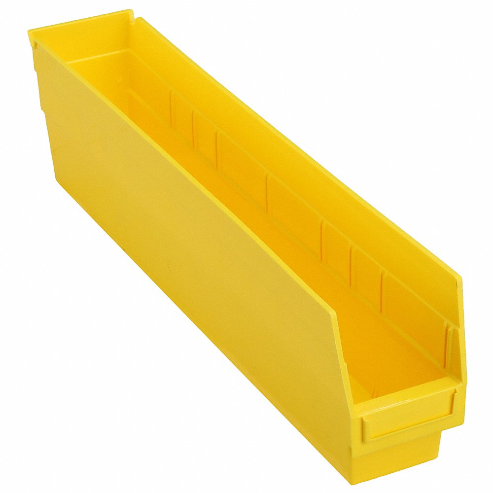 QUANTUM STORAGE SYSTEMS QSB205YL Shelf Bin, 23 5/8 in Overall Length, 4 1/8 x 6 Inch, Yellow, Nestable