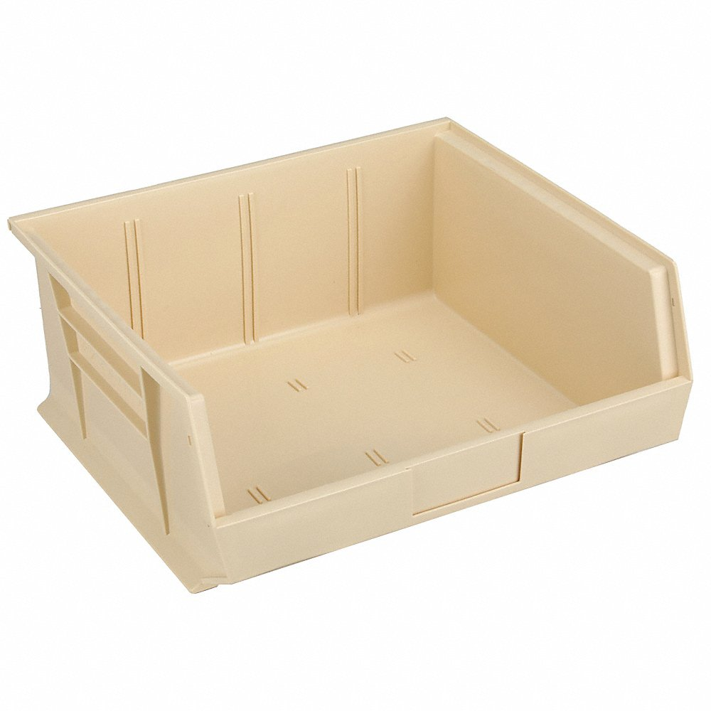 QUANTUM STORAGE SYSTEMS QUS250IV Hang and Stack Bin, 16 1/2 x 14 3/4 x 7 Inch, Beige, Label Holder