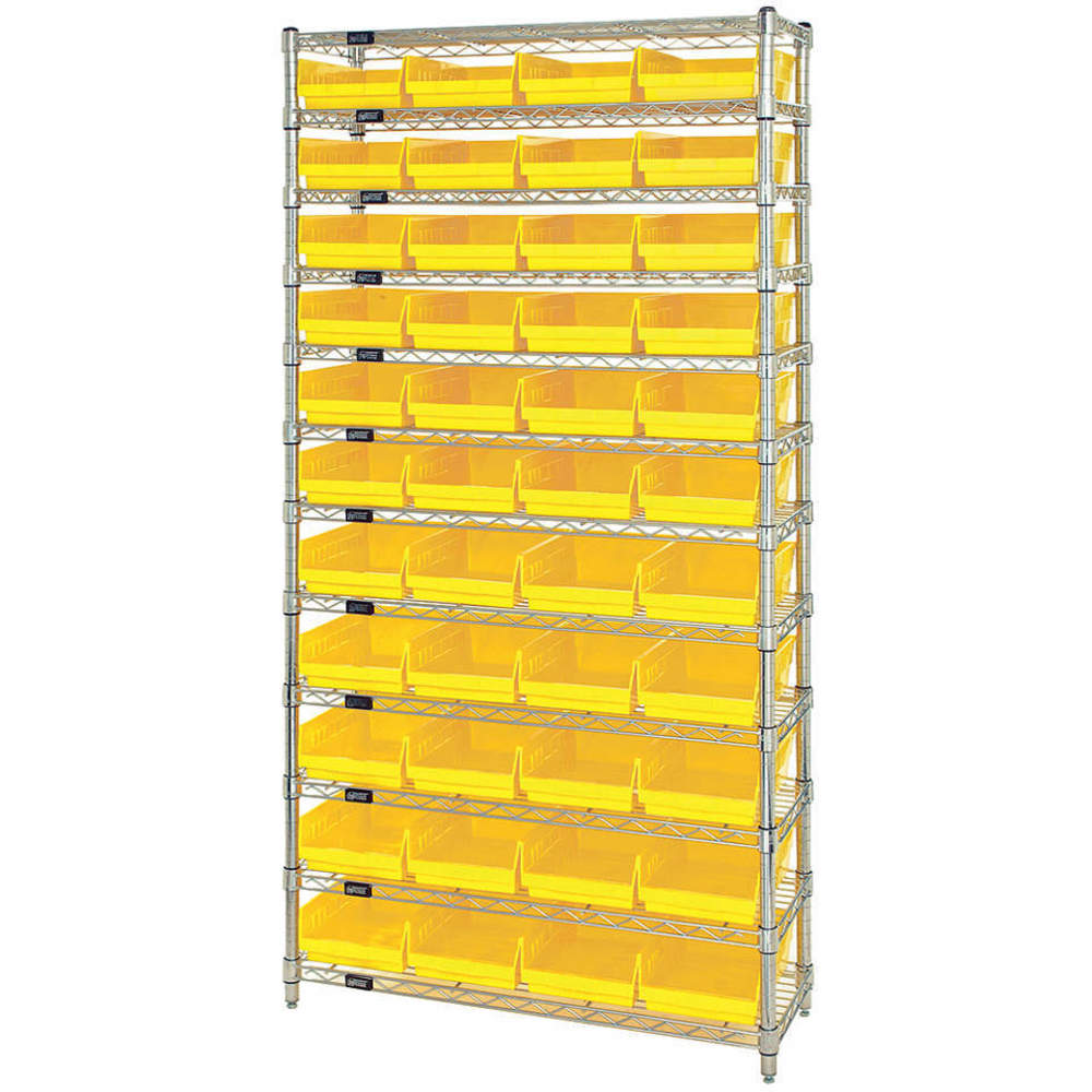 QUANTUM STORAGE SYSTEMS WR12-107YL Bin Shelving, 36 x 12 x 74 Inch Size, 1 Sided, 44 Bin, Open, Shelf Bin