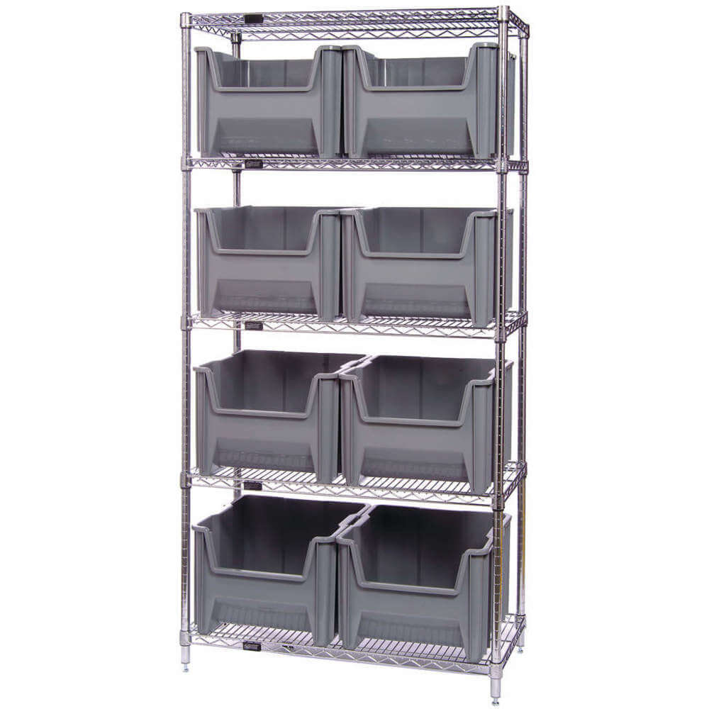 QUANTUM STORAGE SYSTEMS WR5-700BL Bin Shelving, 42 x 18 x 74 Inch Size, 1 Sided, 8 Bin, Open, Blue, 5 Shelve